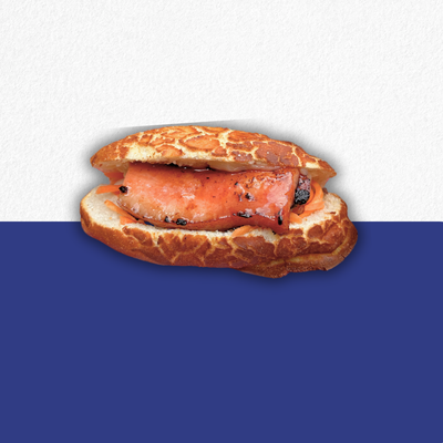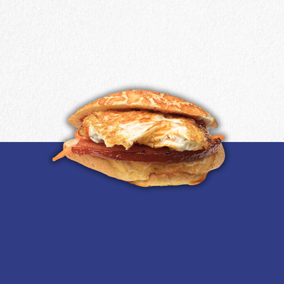Fried egg and charsiu bacon served in mini tiger roll with choices of sauces and cheese (optional)